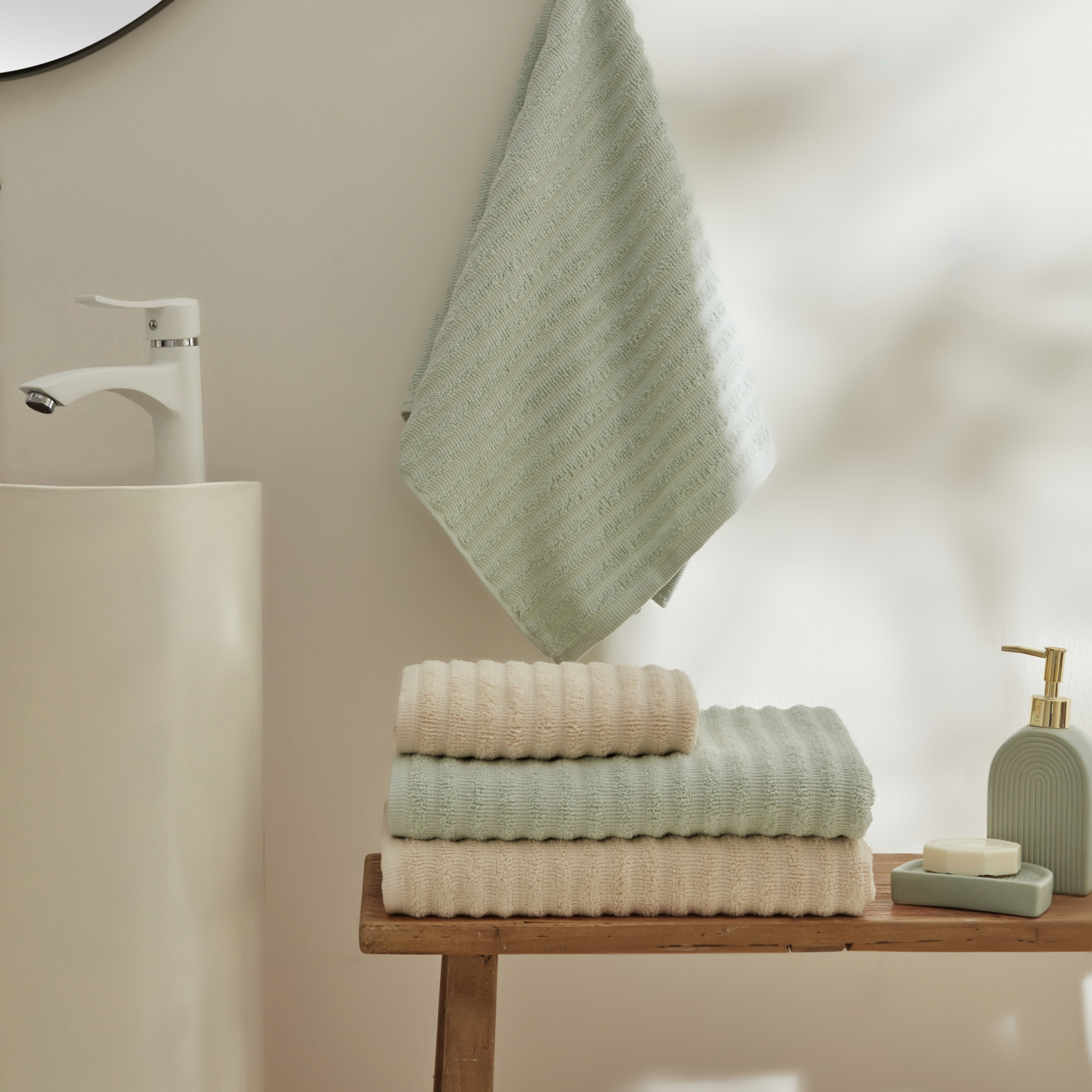 Karaca Home Morina Ensemble Hammam 4 Pièces Menthe-Beige