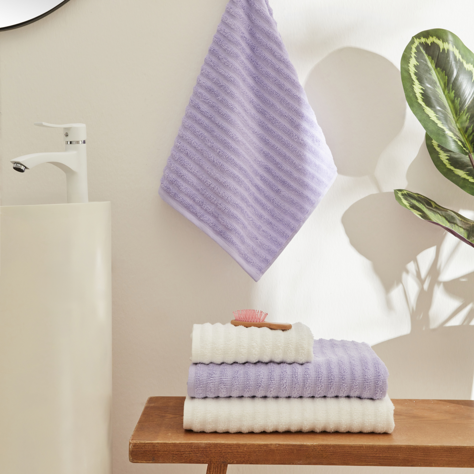 Karaca Home Morina Ensemble de hammam 4 pièces Lilas-Blanc cassé